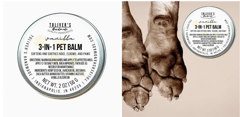 Our 3-in-1 Pet Balm is the ultimate solution for pampering your furry friend from nose to paw! Crafted with care using a blend of premium ingredients, this balm is designed to nourish, soothe, and protect your pet's delicate areas. Formulated with a combination of hemp seed oil, avocado oil, beeswax, shea butter, mango butter, vitamin E, and pet-safe essential oils, our balm provides holistic care for your pet's nose, elbows, and paws. The hemp seed oil and avocado oil work together to moisturize and replenish dry, cracked skin, while the beeswax forms a protective barrier to shield against harsh environmental elements. Shea butter and mango butter offer deep hydration, leaving your pet's skin soft and supple.